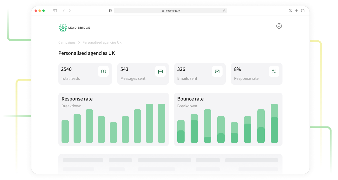 All outreach is managed through the Leadbridge platform. A central system that handles messaging, targeting, delivery, and tracking in one place. Your team has the option to log in, to reply to leads, sync to your CRM, export data, or simply reply from your own platform if you prefer.